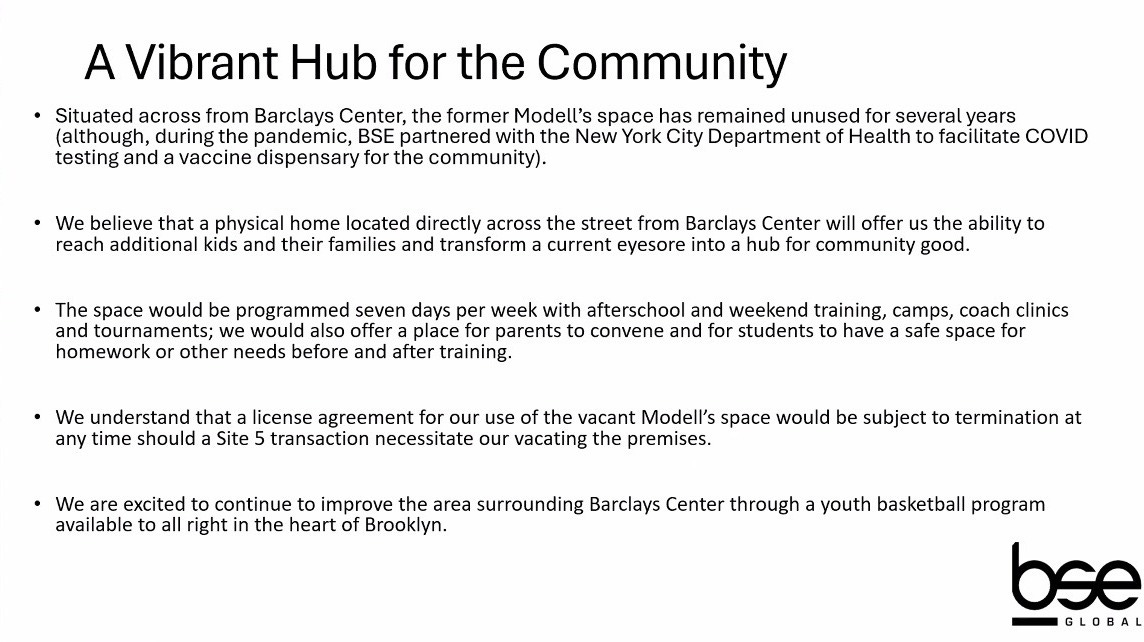 Building on “a handful of community youth clinics per season,” BSE two years ago “decided to more formally invest in our youth through NYC’s vast network of schools,” expanding “to teach clinics in more than 200 Brooklyn schools,” then invested in the new “youth training center” across Flatbush Avene from the Barclays Center.
