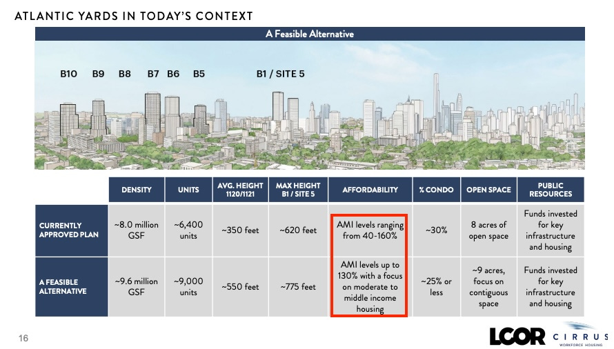 It’s worth noting that “what was negotiated” in the original housing agreement and Community Benefits Agreement was never enforced, as ESD gave the developer a long leash.
