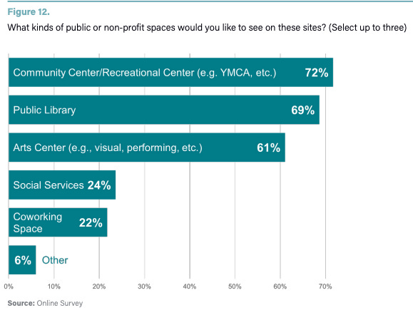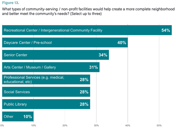 “Workshop participants’ top priority was a recreational center or intergenerational community facility, followed by a day care center or preschool, a senior center, and an arts center,” the report said.