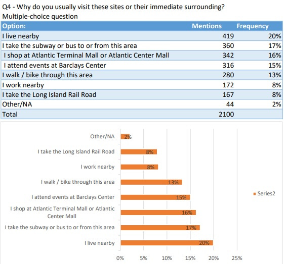 Meanwhile, more than 71% and 72% of respondents, respectively, said they’d regularly visited stores and restaurants along Vanderbilt Avenue and along Flatbush Avenue.
