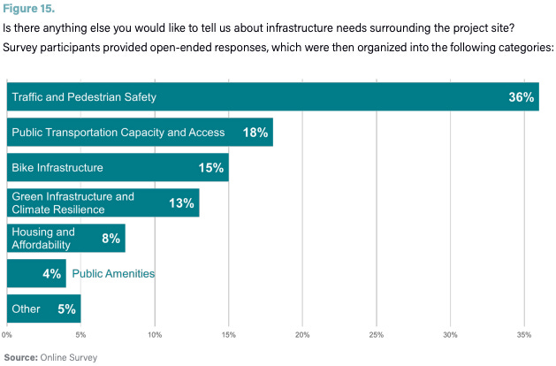 Asked about infrastructure needs, as shown in the graphic below, respondents in the online survey prioritized traffic and pedestrian safety.
