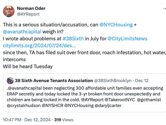 Though I haven’t yet written about it other than on Twitter/X, a lawsuit filed against the operators of 38 Sixth Avenue (B3) by the 38 Sixth Avenue Tenants’ Association will be heard in court on Tuesday. Here’s a link to the case.