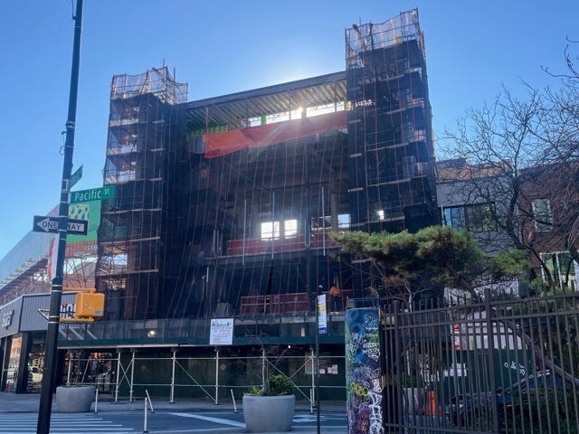 I also checked in on two parcels very close to the arena block and found 1) that the Times Plaza open space revamp is still on hold and 2) a Pacific Street property, once billed as “Brooklyn Flagship,” is finally under transformation.